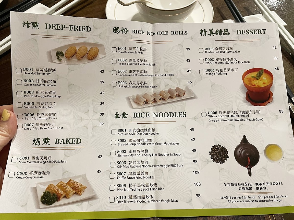 For those craving bold flavors, the Sichuan section delivers depth and heat with Spicy Sichuan Sauce Wok-Fried Frozen Tofu With Mushrooms (Regular), Sichuan Mapo Tofu (Regular), and Veggie Fish Fillets In Spicy Sichuan Soup (Regular). The sizzling casseroles-Braised Eggplants In Casserole (Regular), Pepper And Pickled With Assorted Mushroom In Casserole (Regular), and Elms Fungus And Yellow Fungus In Casserole (Regular)-add warmth and richness, while steamed dim sum such as Golden Vegetables Dumplings (3 Pcs), Healthy Veggie Steamed Buns (3 Pcs), Veggie Shrimp And Bamboo Shoot Tips Dumplings (4 Pcs), Bamboo Pith Veggie Sharks Fin Dumpling In Soup (1 Pc), and Mixed Mushroom Dumplings With Black Truffle Sauce (3 Pcs) reflects finesse and balance. Finally, Cantonese chef specials like Sweet And Sour Wok-Fried Monkey Head Mushroom (Regular) and Chef Special Veggie Zhenjiang Bone (Regular) neatly conclude a menu that feels complete, creative, and deeply satisfying for both vegetarians and curious diners alike.