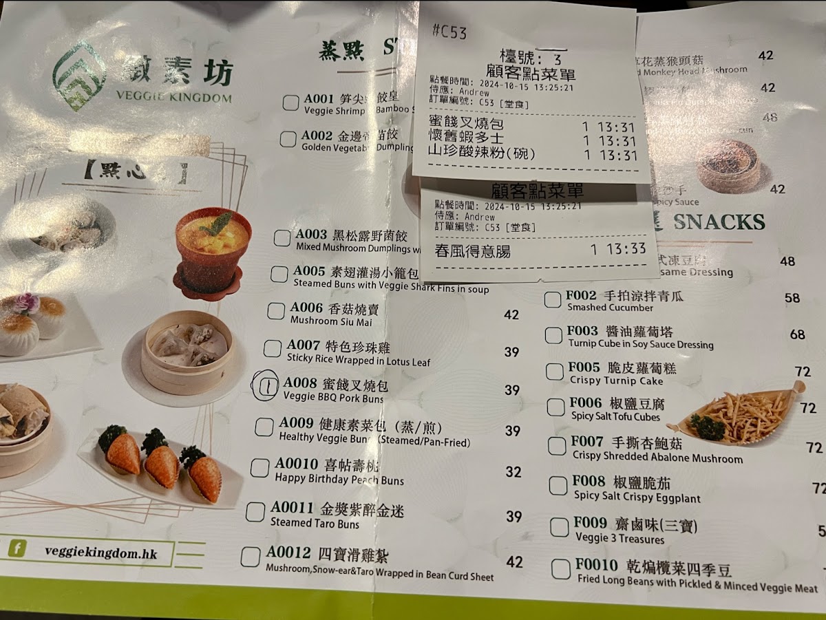 From a reviewer’s perspective, the menu at Veggie Kingdom (Tsim Sha Tsui), located at 7樓, 120號 Canton Rd, presents a thoughtfully curated and impressively extensive celebration of vegetarian Cantonese cuisine. The daytime dim sum selection (11:00am-3:30pm) sets a strong foundation, with silky Veggie BBQ Pork Rice Noodles Rolls (6 Pcs), fragrant Spring Spring Rice Noodles Rolls (6 Pcs), earthy Ganoderma And Mixed Mushroom Rice Noodles Rolls (6 Pcs), and comforting Plain Rice Noodles Rolls (9 Pcs) showcasing both texture and balance. The menu then expands into heartier territory with Healthy Soup And Thick Soup (Regular, 1 Serving), alongside satisfying staples like Lohan Style Stir-Fried Crispy Noodles (Regular), Veggie Singapore Noodles (Regular), and Elms Fungus, Cashews And Dried Fruit Fried Rice (Regular).